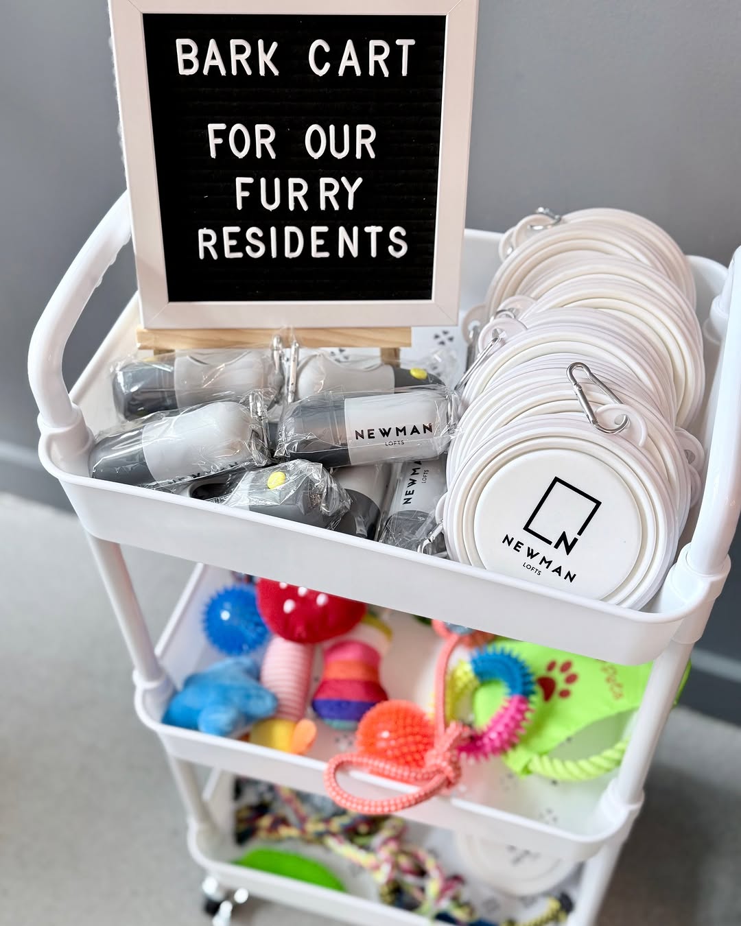 Swing by the lobby today and treat your furry friends! 🐾 Our Bark Cart is stocked with goodies just for our four-legged residents, because they deserve a little extra love too. Stop by, grab a treat, and make their day!